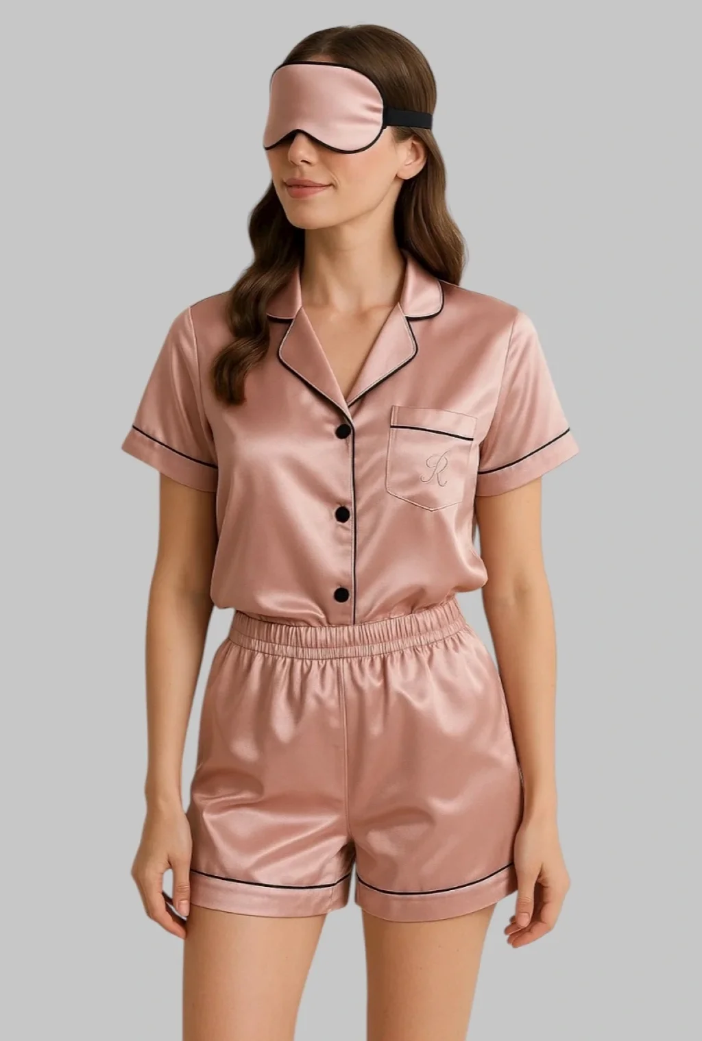 Agatha Saten Gömlek Yaka ikili Gecelik Takım
