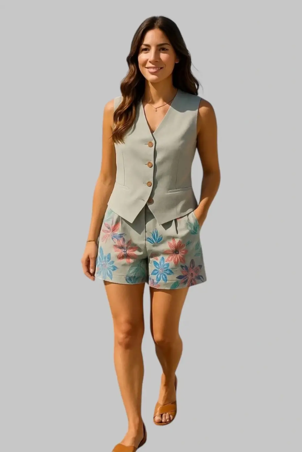 Alina İthal Keten Şortlu İkili Takım Tasarım
