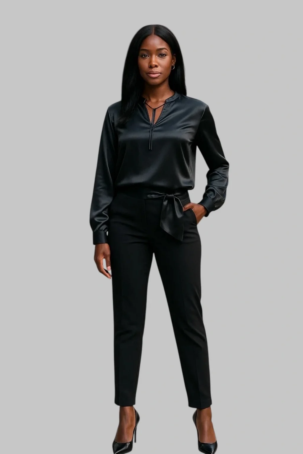 Black Bağlama Detay Hakim Yaka İhtal Saten Tasarım Bluz 2026