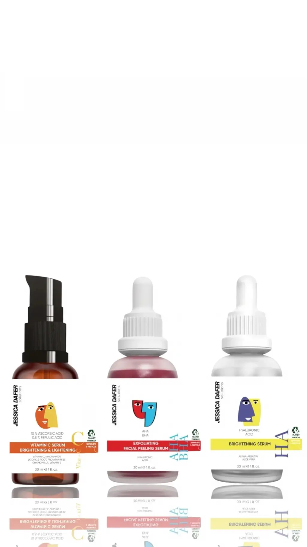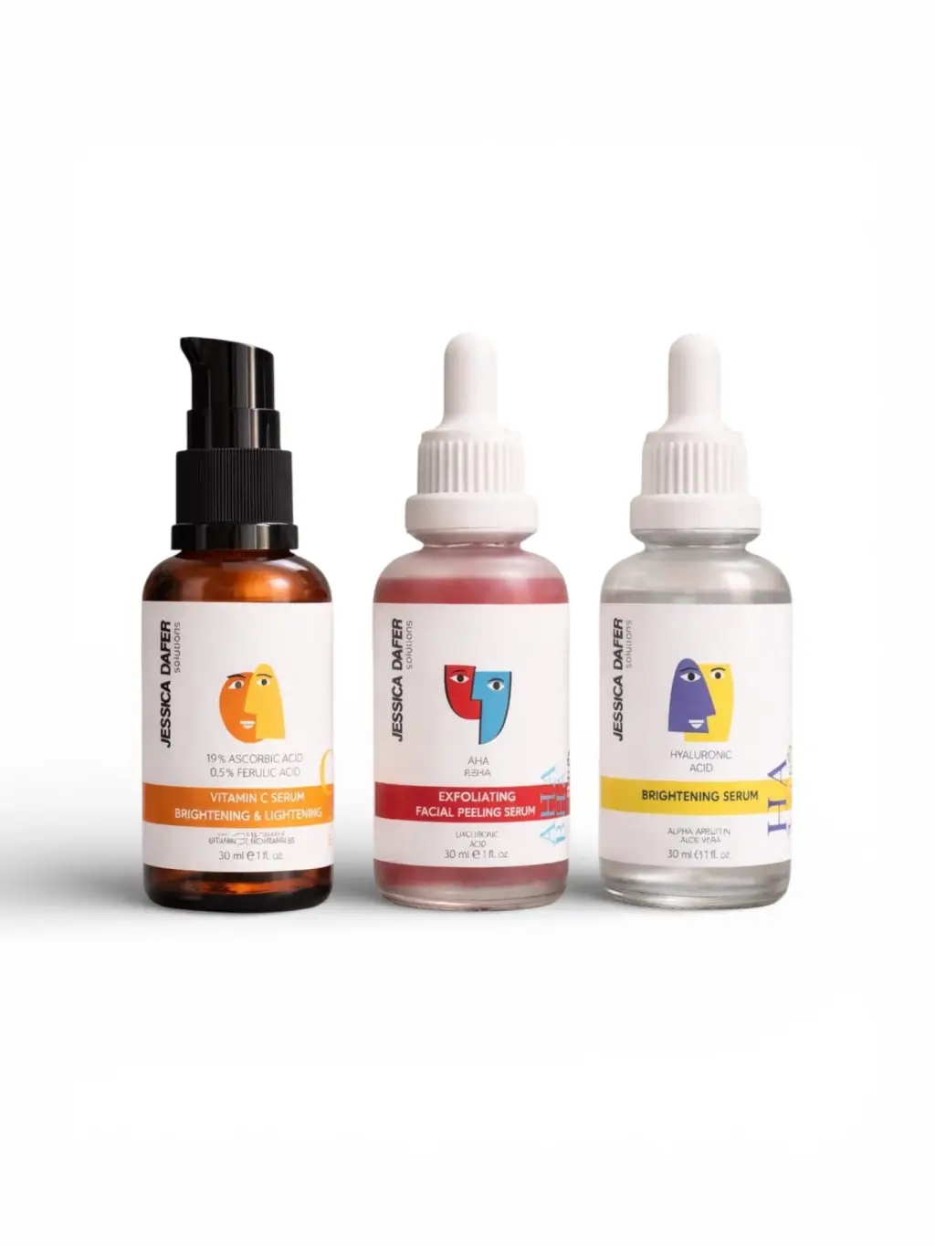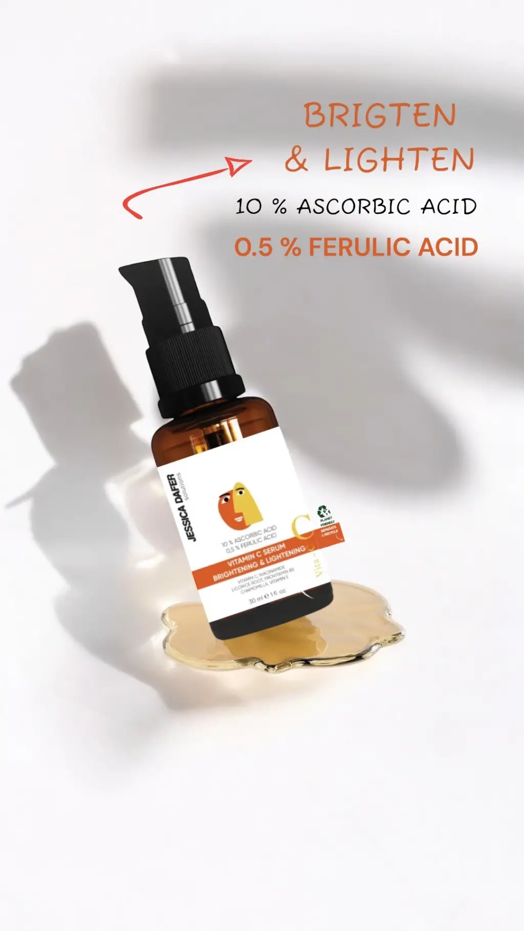 Vitamin C Serum: C vitamini cilt için önemli temel antioksidanlardan biridir. Bu ürün 10% Ascorbic Acid, 0.5% Ferulic Acid ve Prebiyotikler ile zenginleştirilerek formüle edilmiştir. Cildi yenilerken aynı zamanda beslemeyi hedefler. Ciltte canlanma, aydınlanma sağlar ve ince kırışıklıkları azaltmaya yardımcı olur.