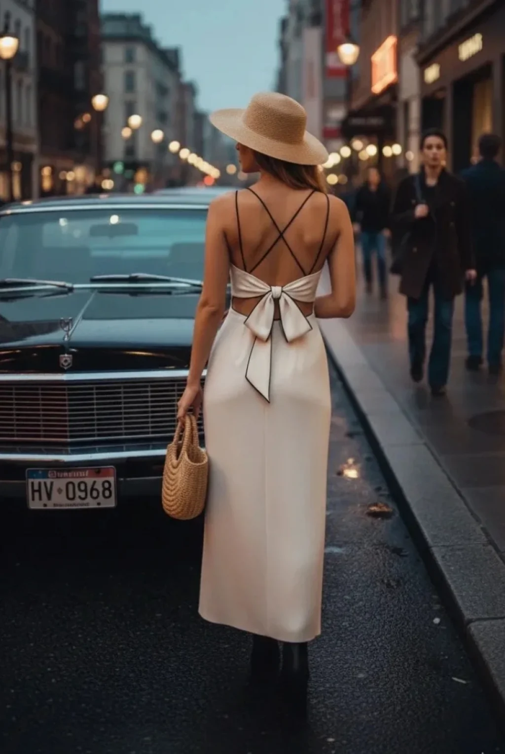 Dora Beyaz Askılı Sırt Bağlama Detay Uzun Yırtmaçlı Örme Likralı Elbise Tasarım W 2026