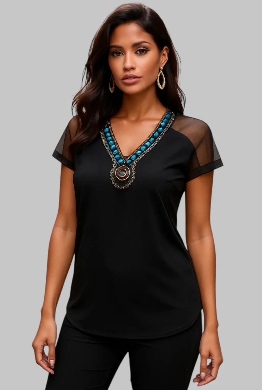 Frederika İhtal Yaka Detay Omuz Tül Kaplama İhtal Krep Bluz