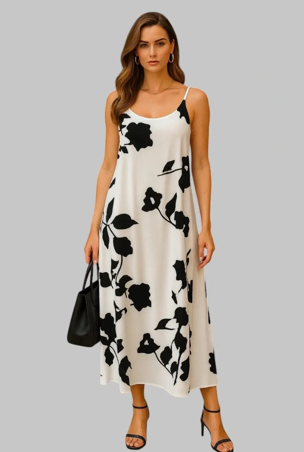 New Jersey Askılı Desenli Elbise Tasarım 2026