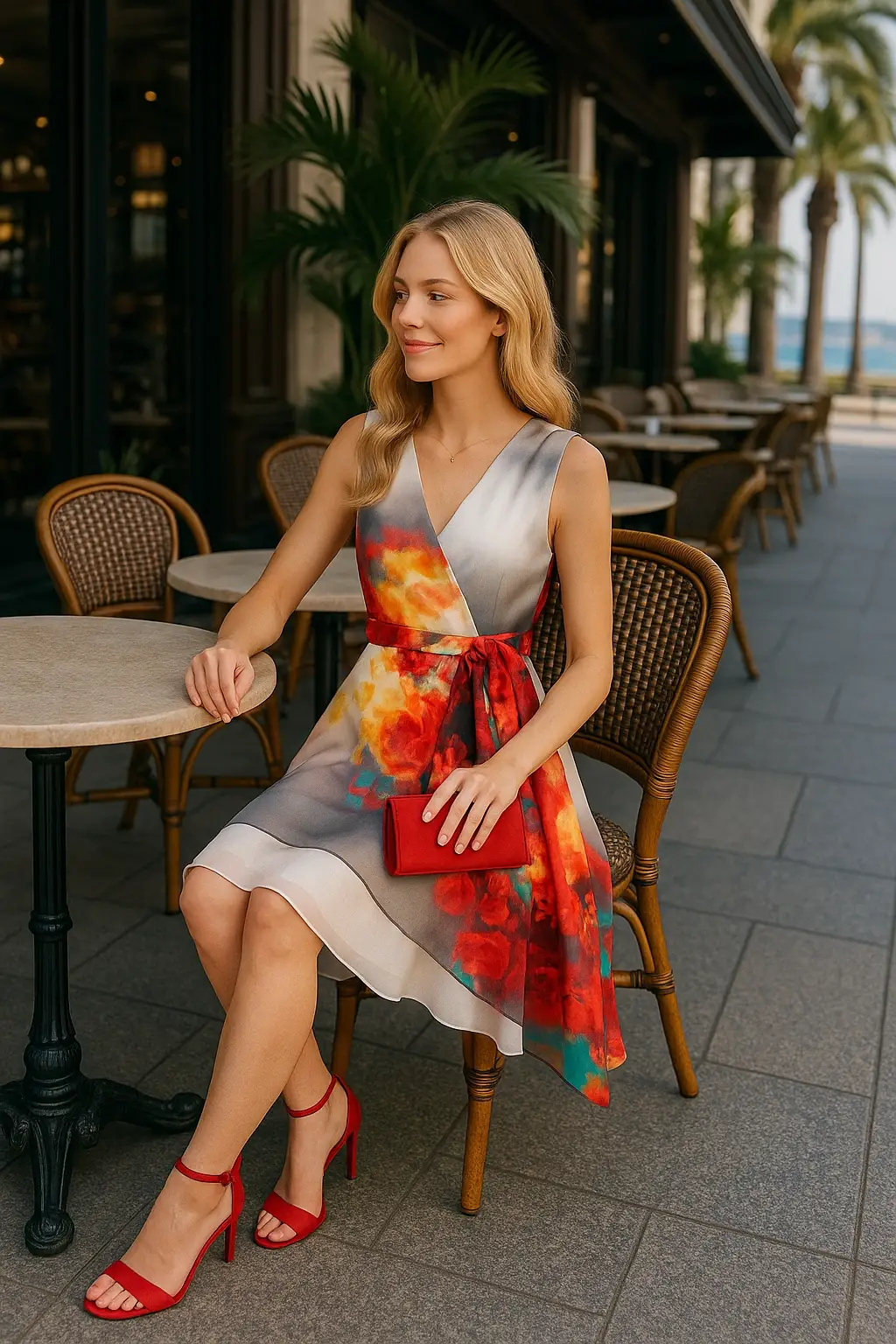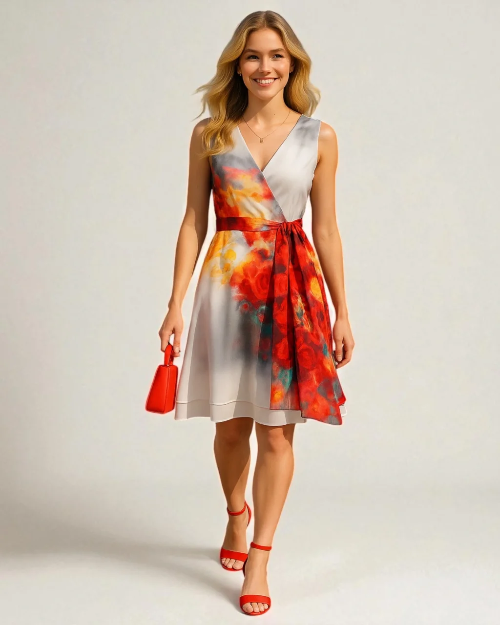 Lena Kruvaze Dijital Baskı Desenli Elbise