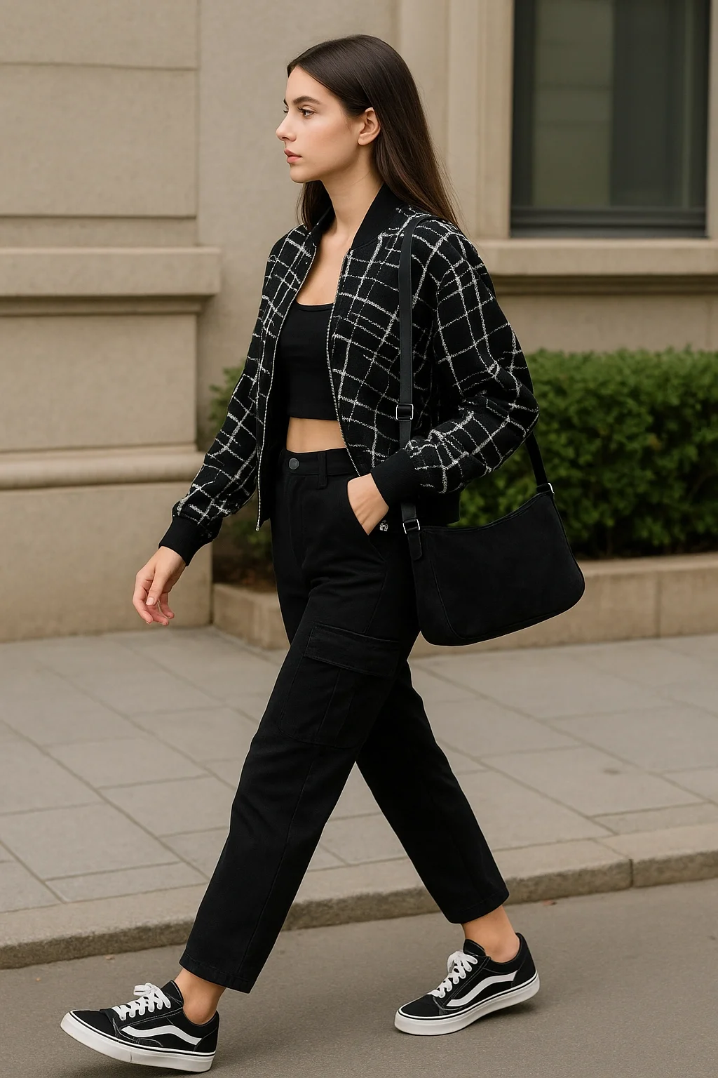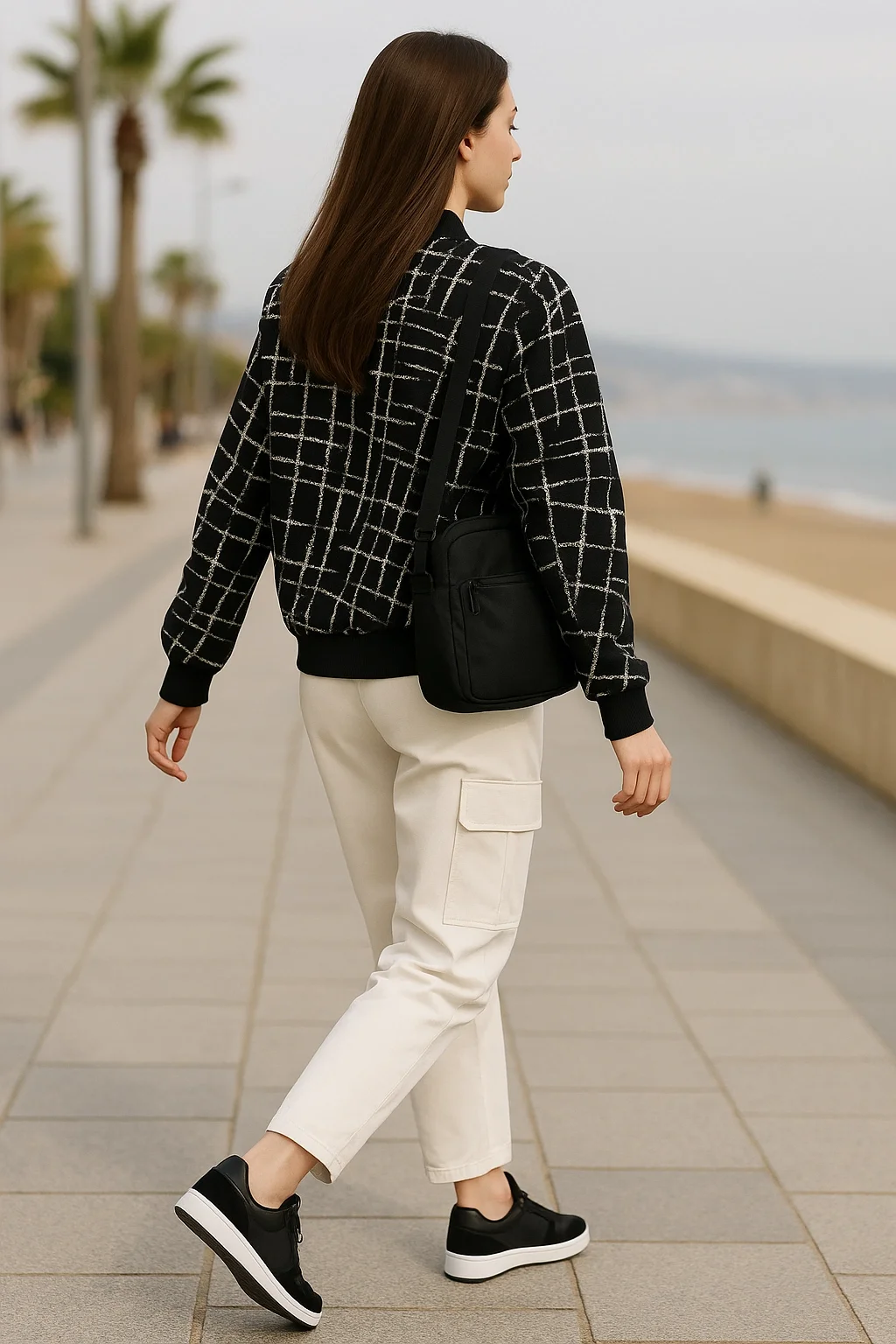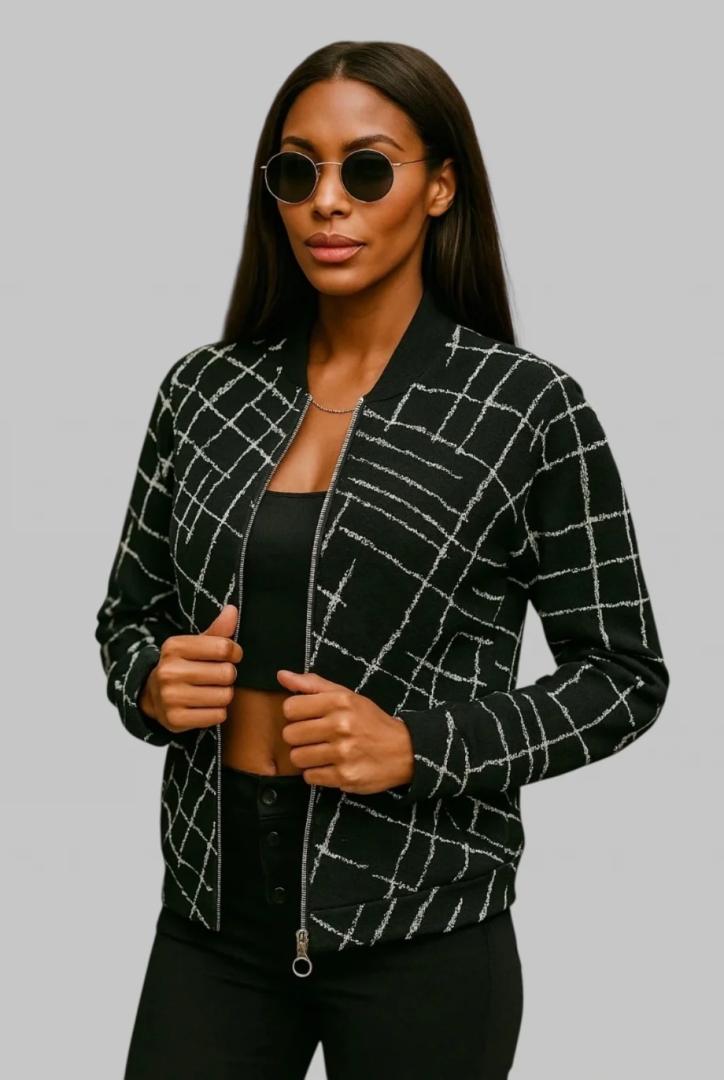 Lora Siyah Beyaz Fermuarlı Bomber Ceket