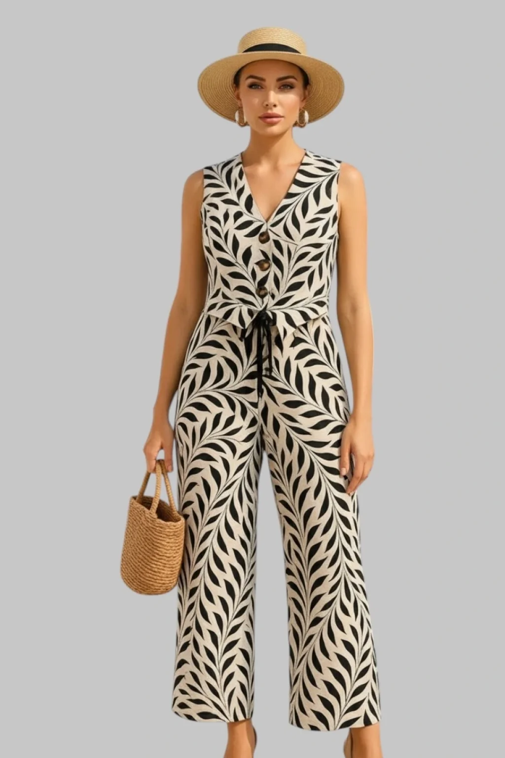 Marsilya Siyah Beyaz Keten Pantolon Takım