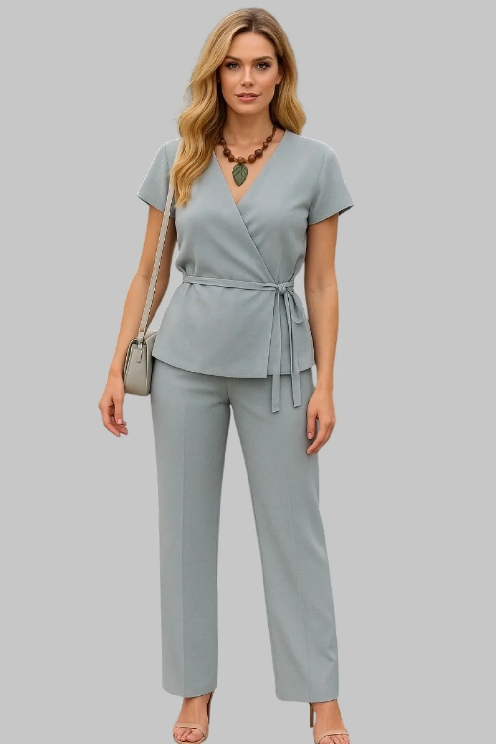 Mina Pamuk Keten İkili Kruvaze Pantolon Takım