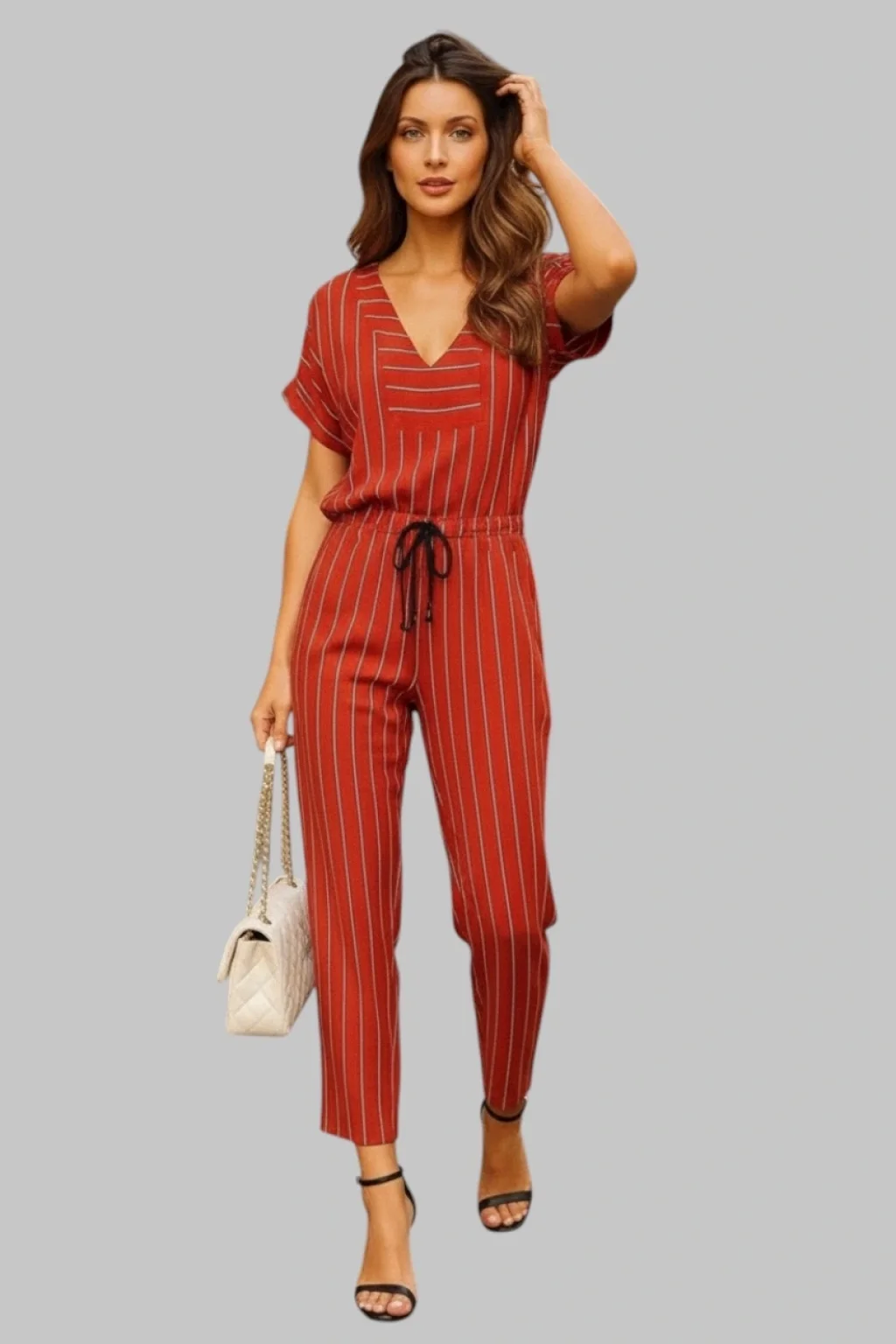 Moli Kırmızı Patuk Keten Pantolon İkili Takım