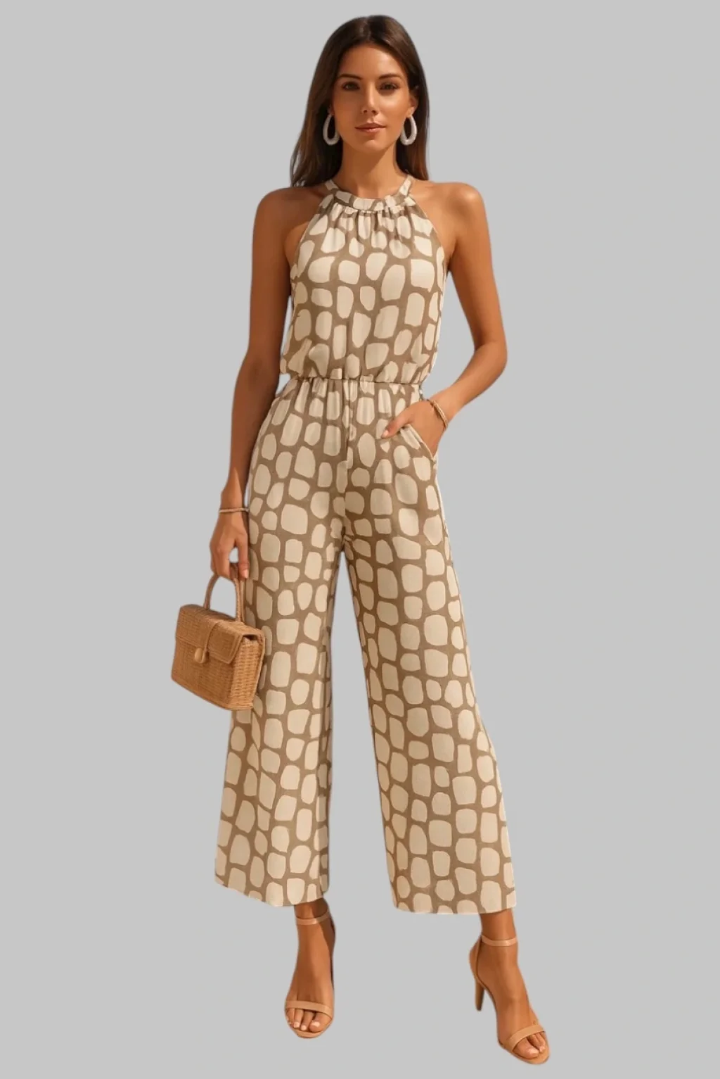 Şık 2 Parçalı Geometrik Desen Ruched Detay Kolsuz Pantolon Takım