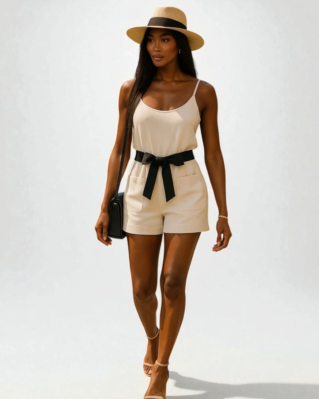 Edna Keten Şortlu Bağlamalı Tulum Tasarım