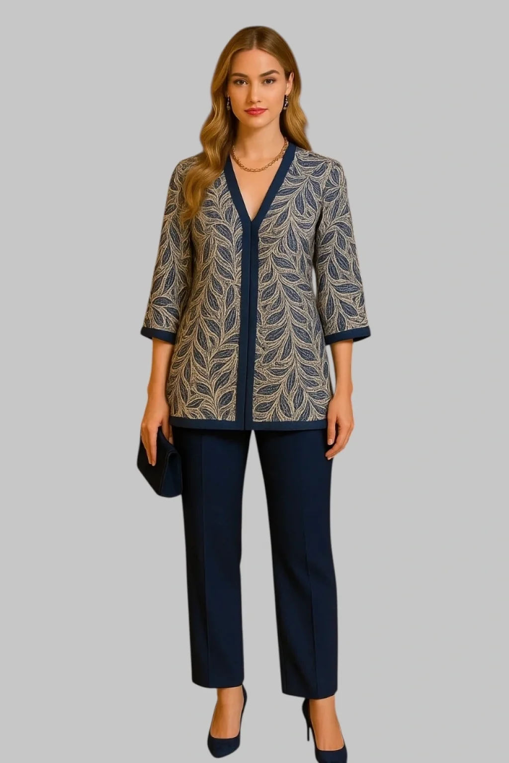 Scarlett Dantel Krep Beli Lastikli Cepli Kimona Pantolon İkili Takım