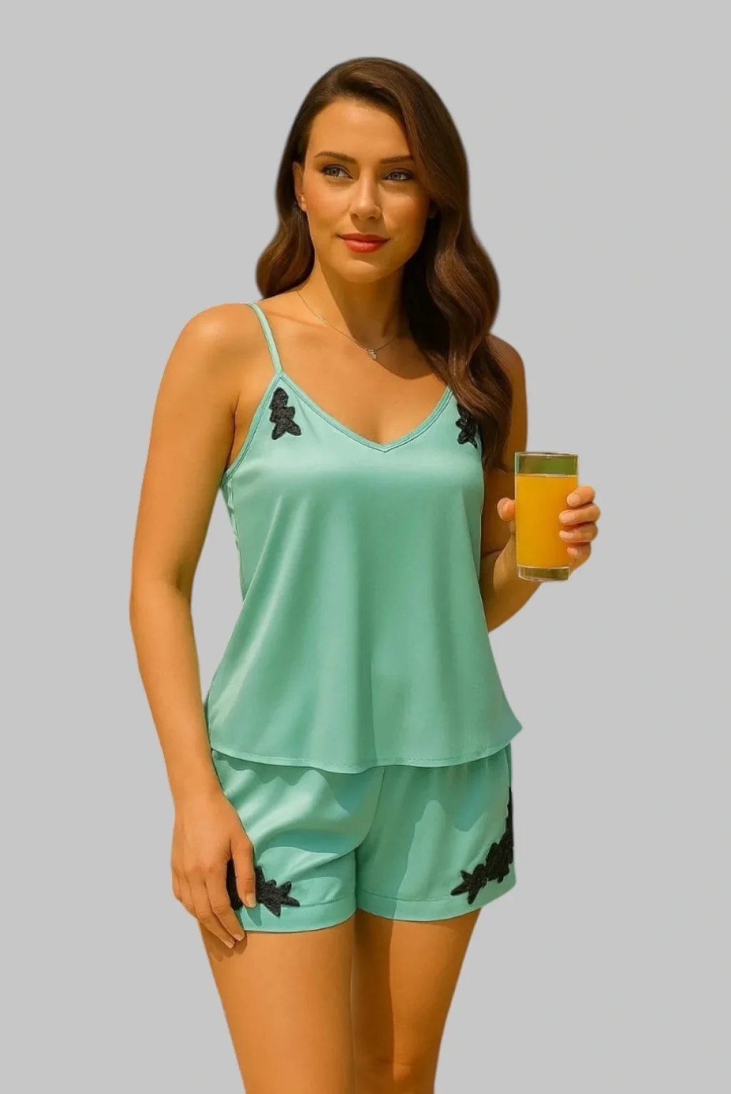 Barbara İthal Saten Gecelik Takım Aplik Detay