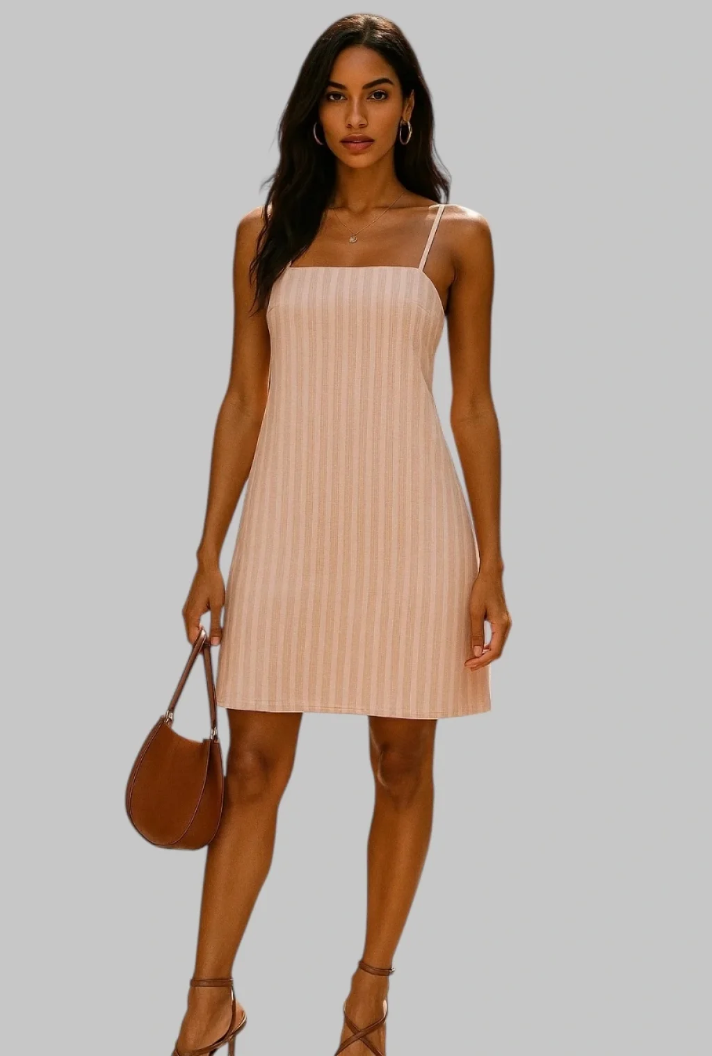Sonya Çizgili İthal Keten Askılı Elbise