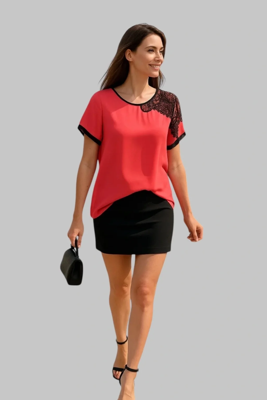 Gina Omuz Dantel Detay İthal Şifon Bluz