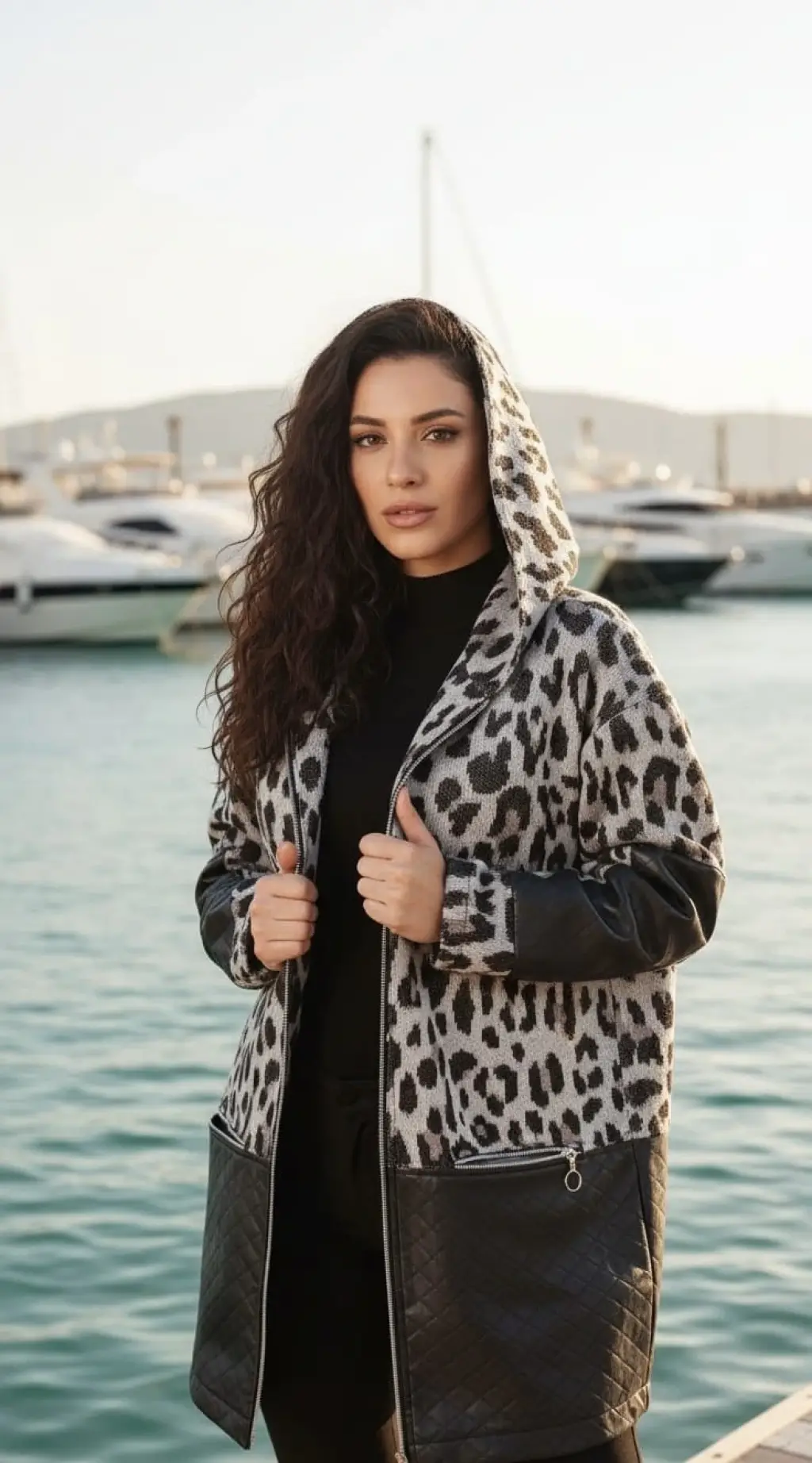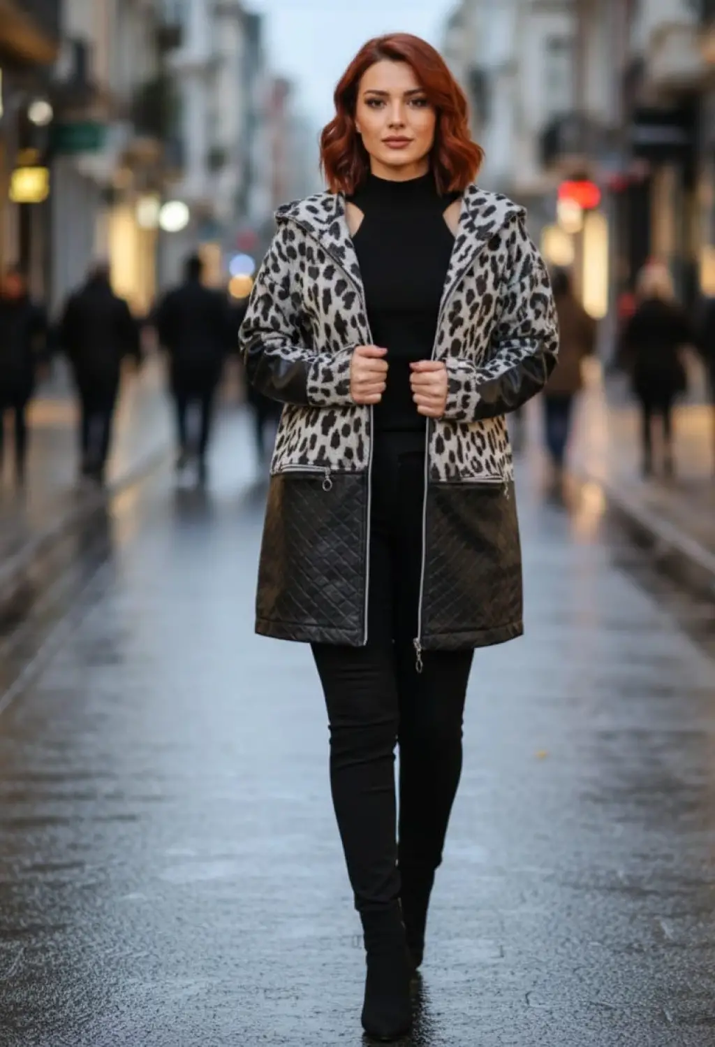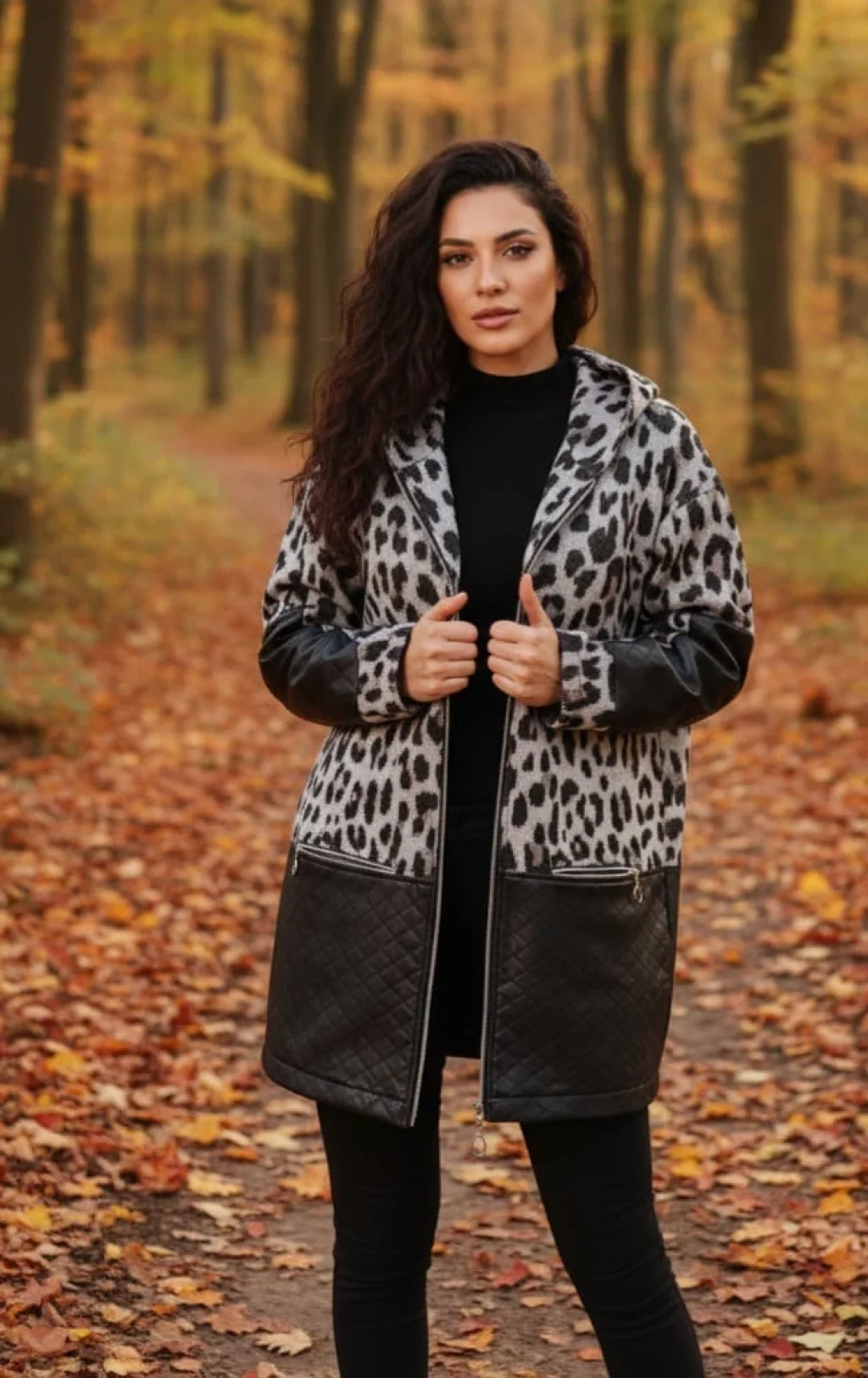 Jennifer Deri Kombineli Kapüşonlu Tasarım Kaban