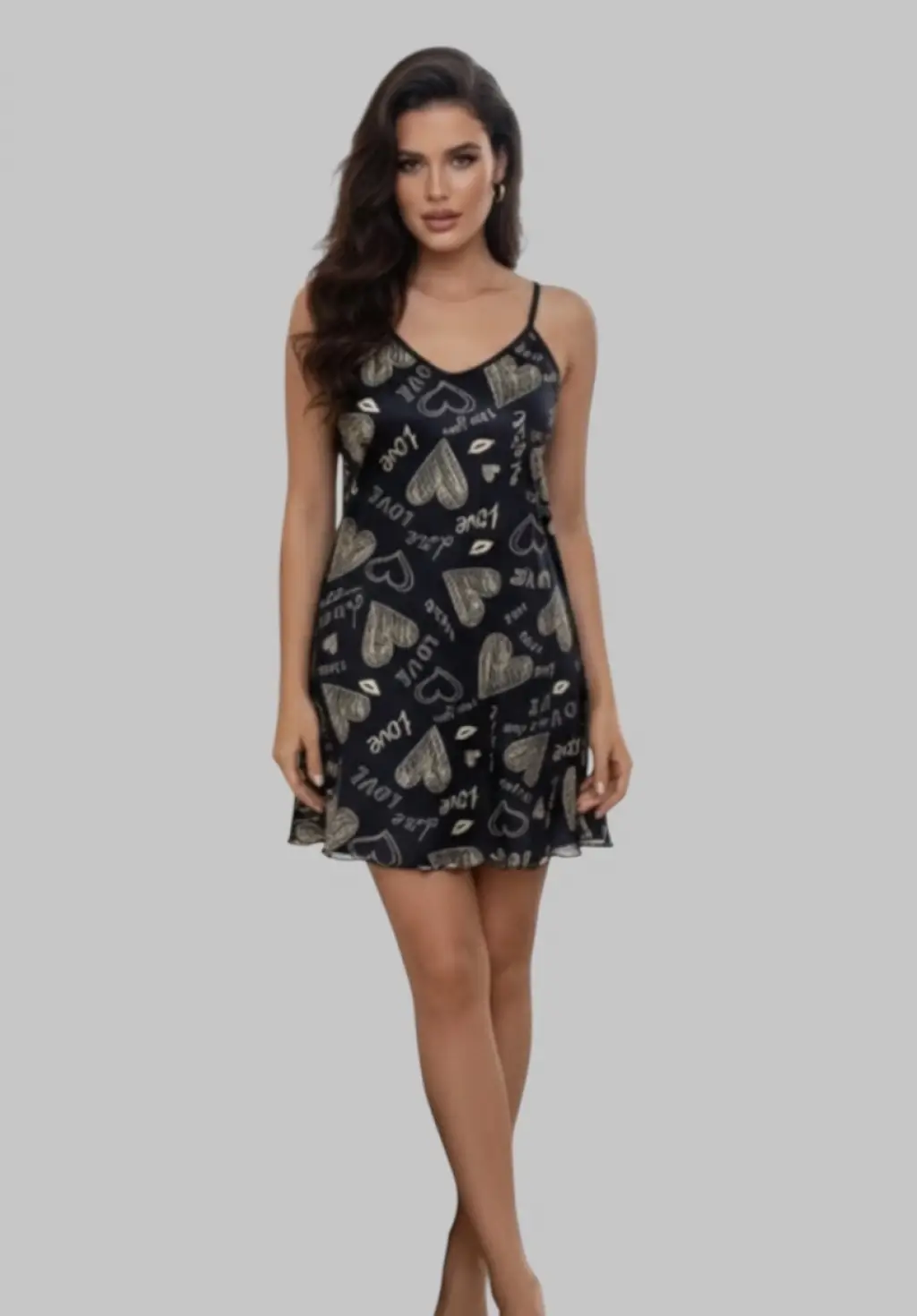 Samila Saten Kalp Desen Gecelik Tasarım