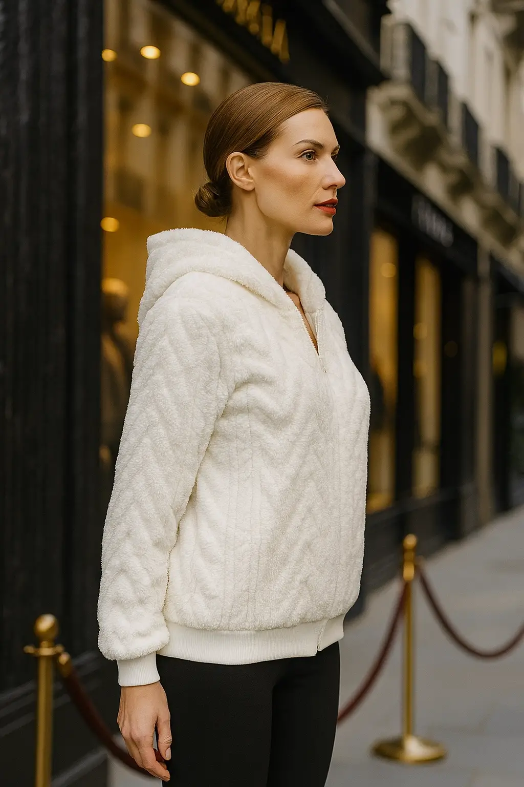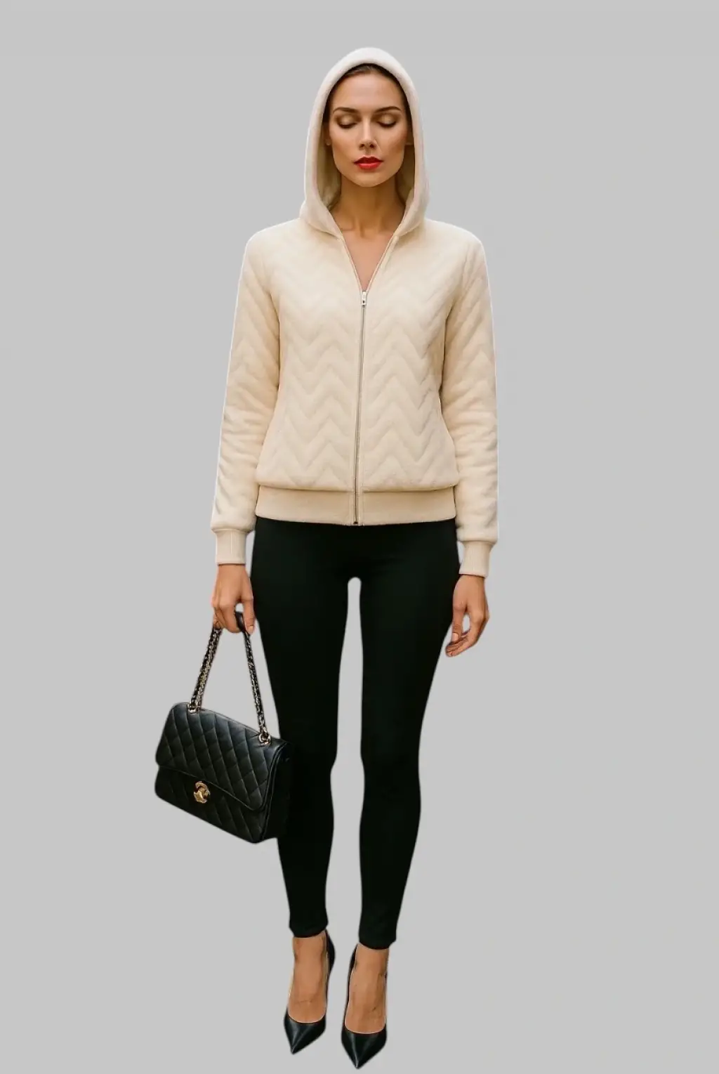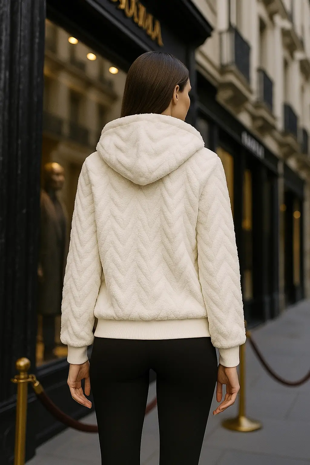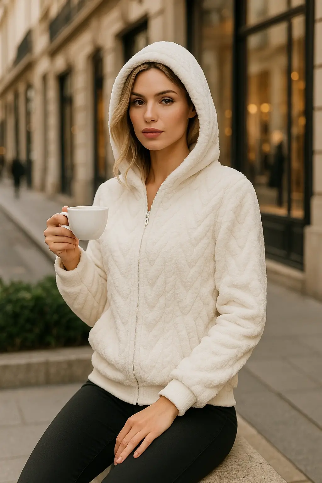 Papi Peluş Detay Kapüşonlu Fermuarlı Örme Tasarım Ceket