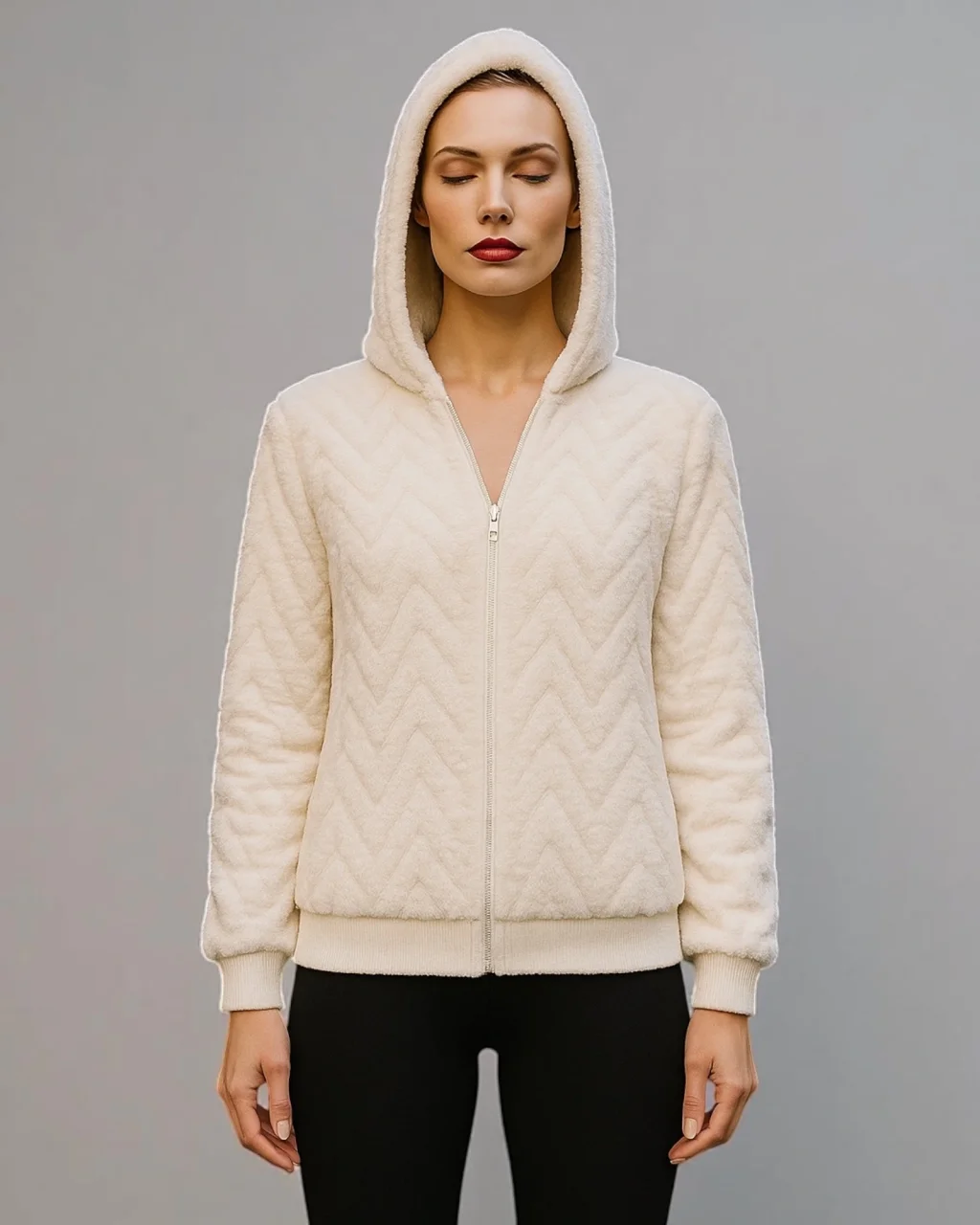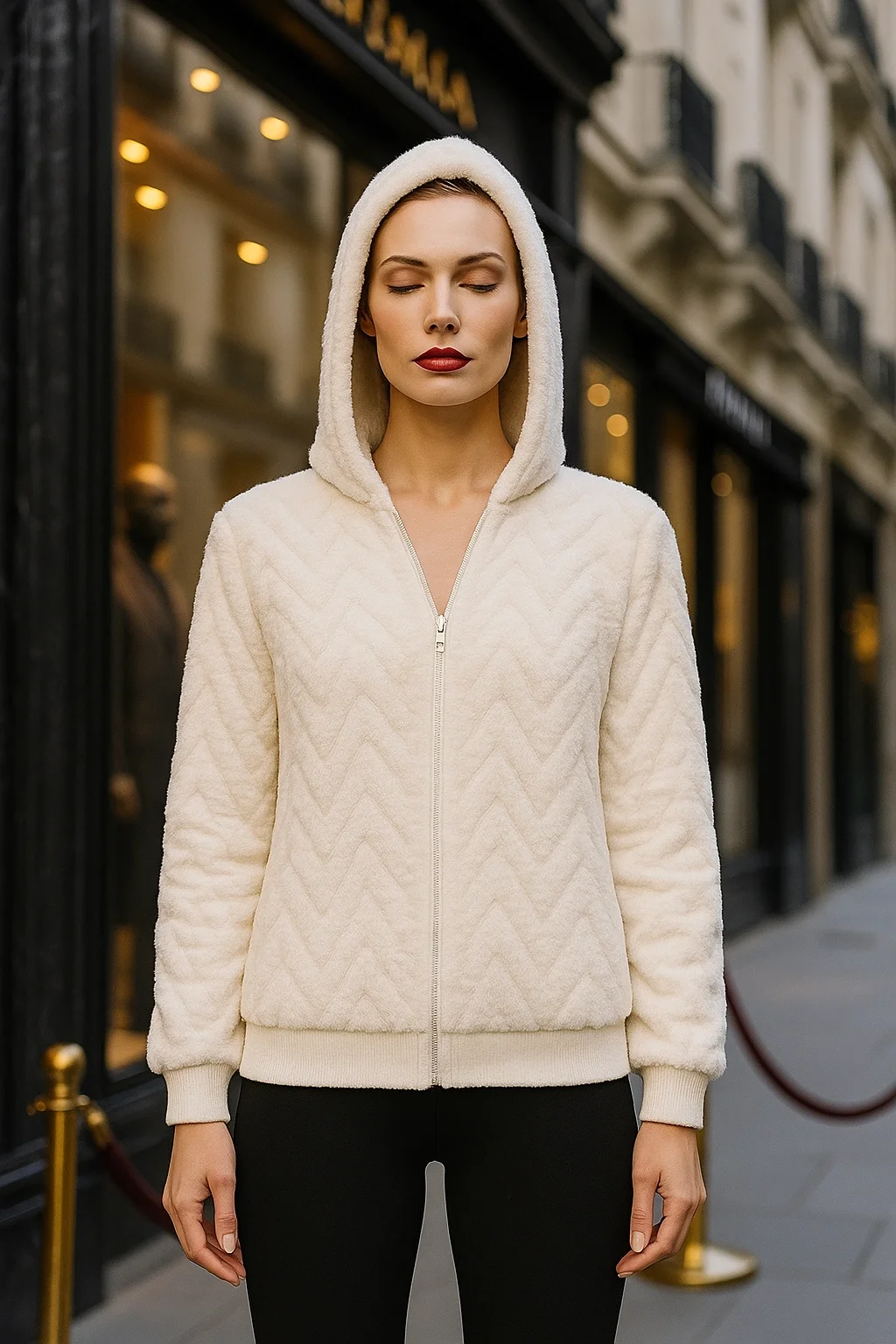 Saba Peluş Dokulu Fermuarlı Kapüşonlu Tasarım Ceket