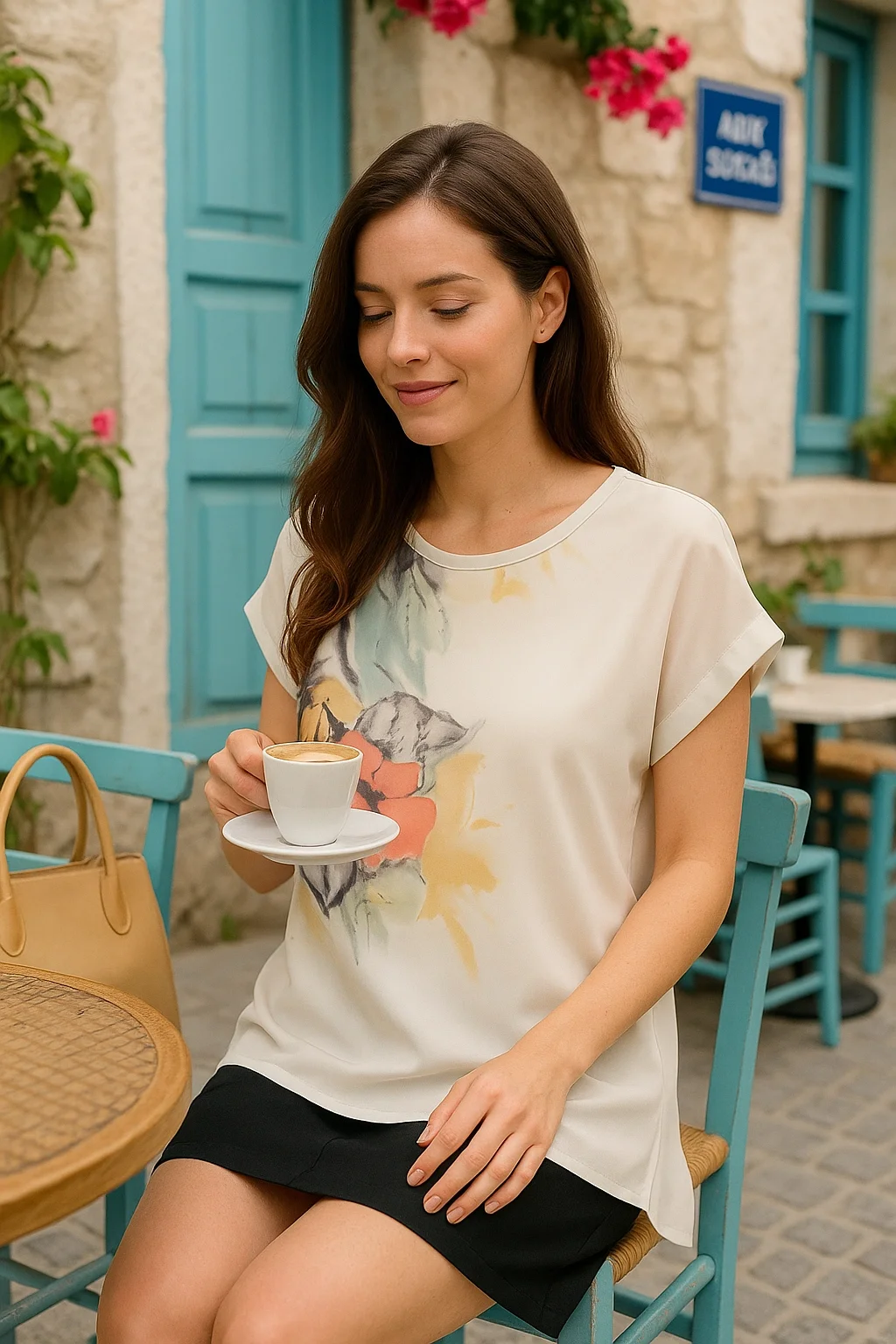 İndia İthal Şifon Çift Katlı Dijital Baskı Bluz