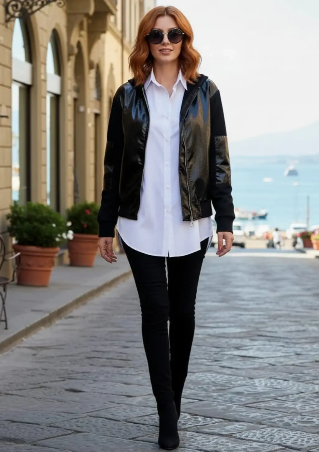 Sendi Deri Bloklu Bomber Tasarım Mont