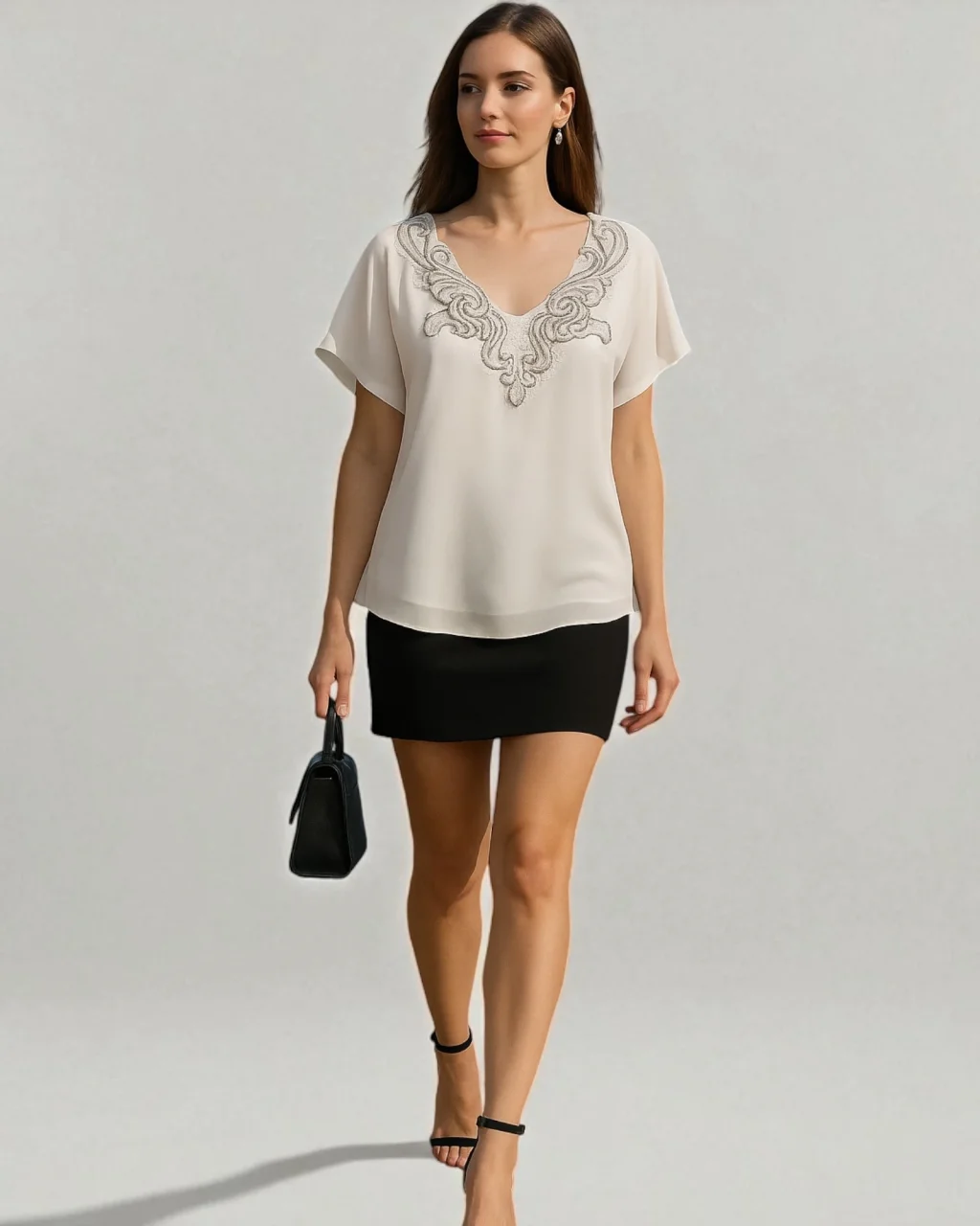 Gina Omuz Dantel Detay İthal Şifon Bluz