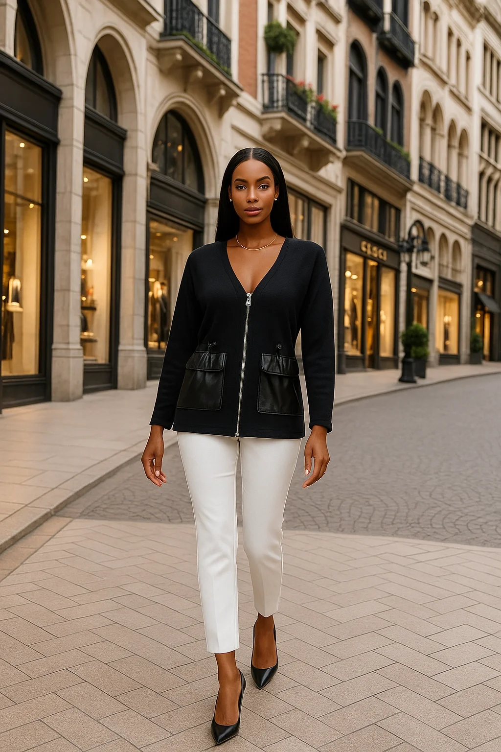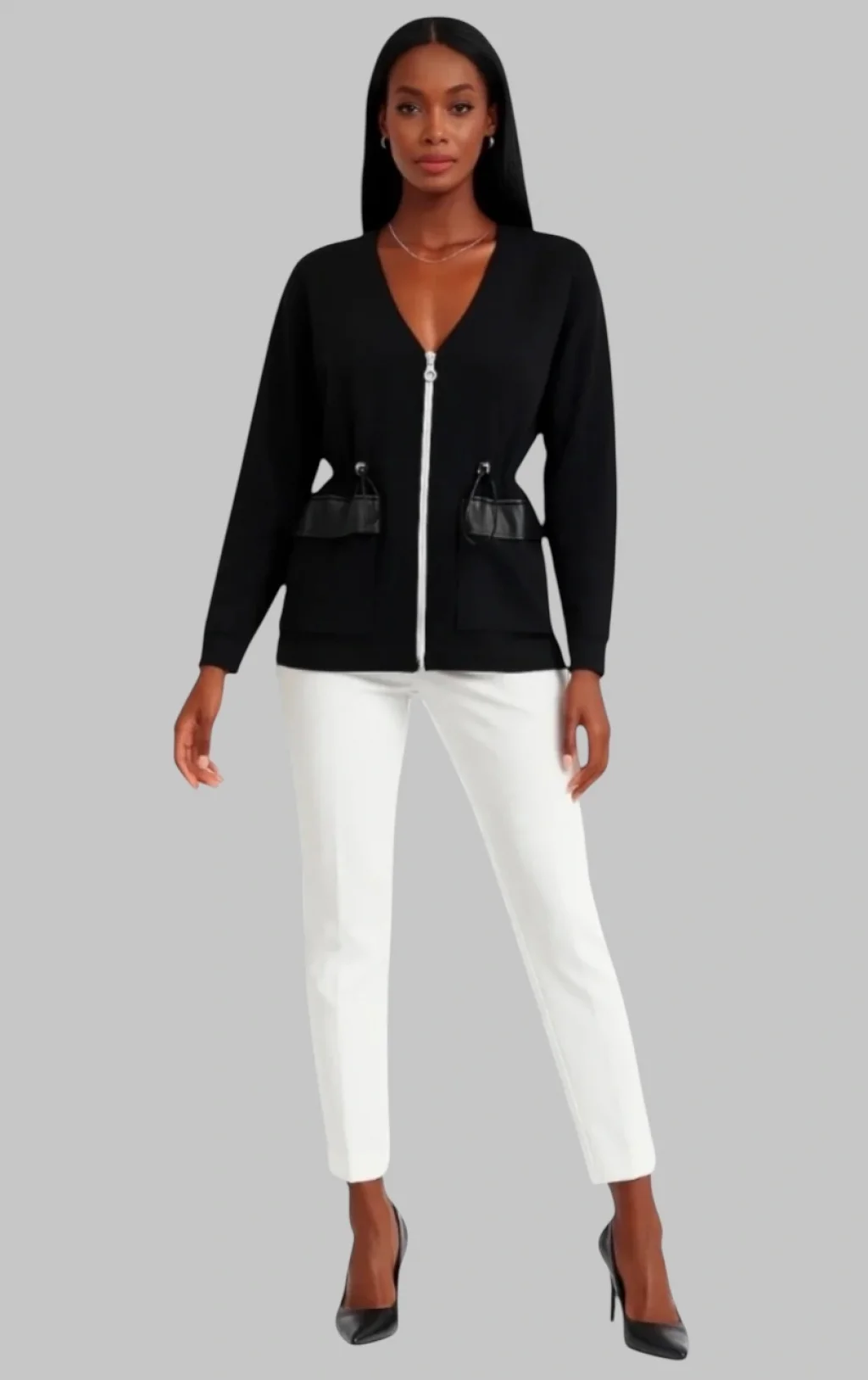 Venassa Vegan Yakma Tül Deri Detay Tasarım Bluz