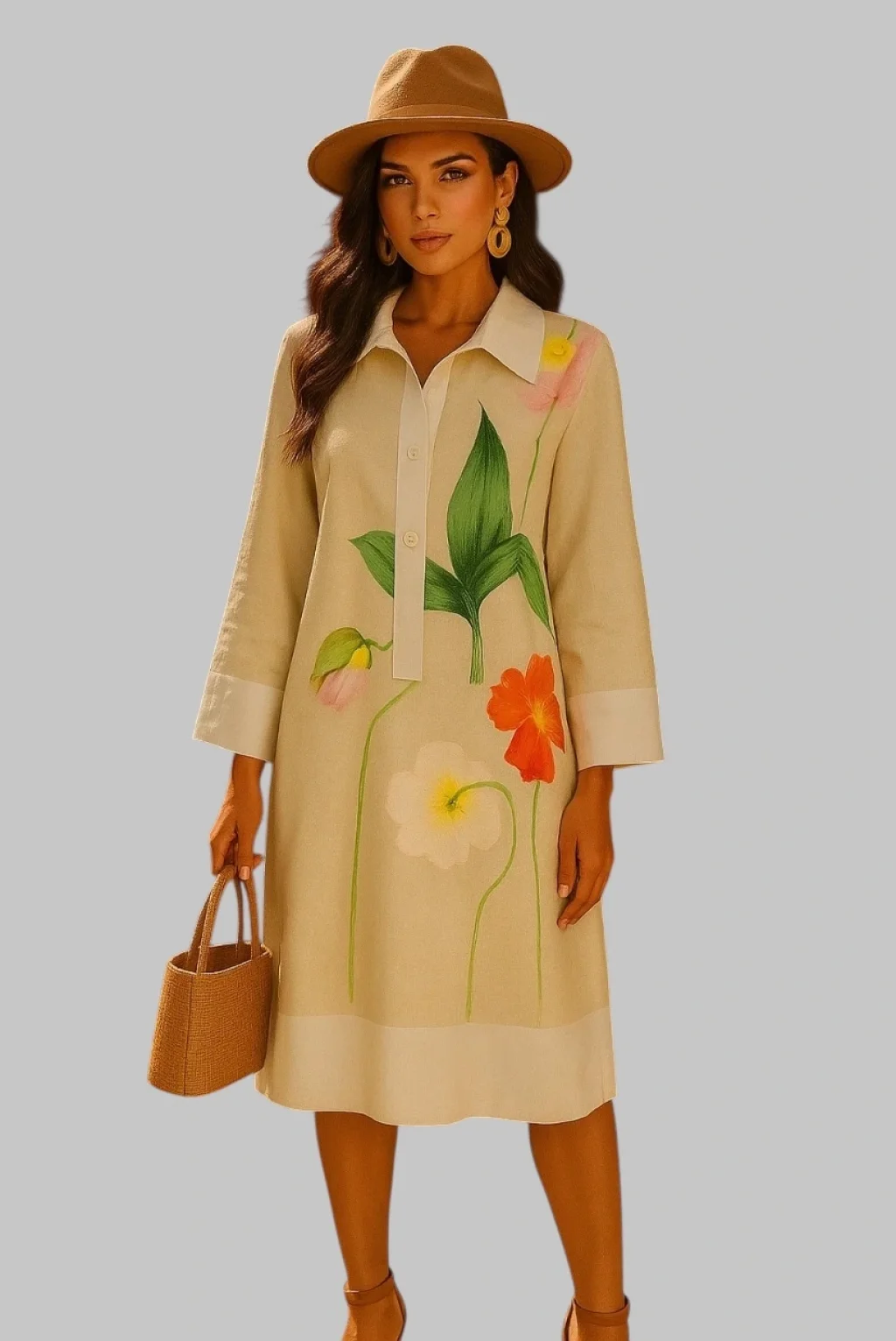 Uzun Kollu Çiçek Desenli Gömlek Elbise Trend France