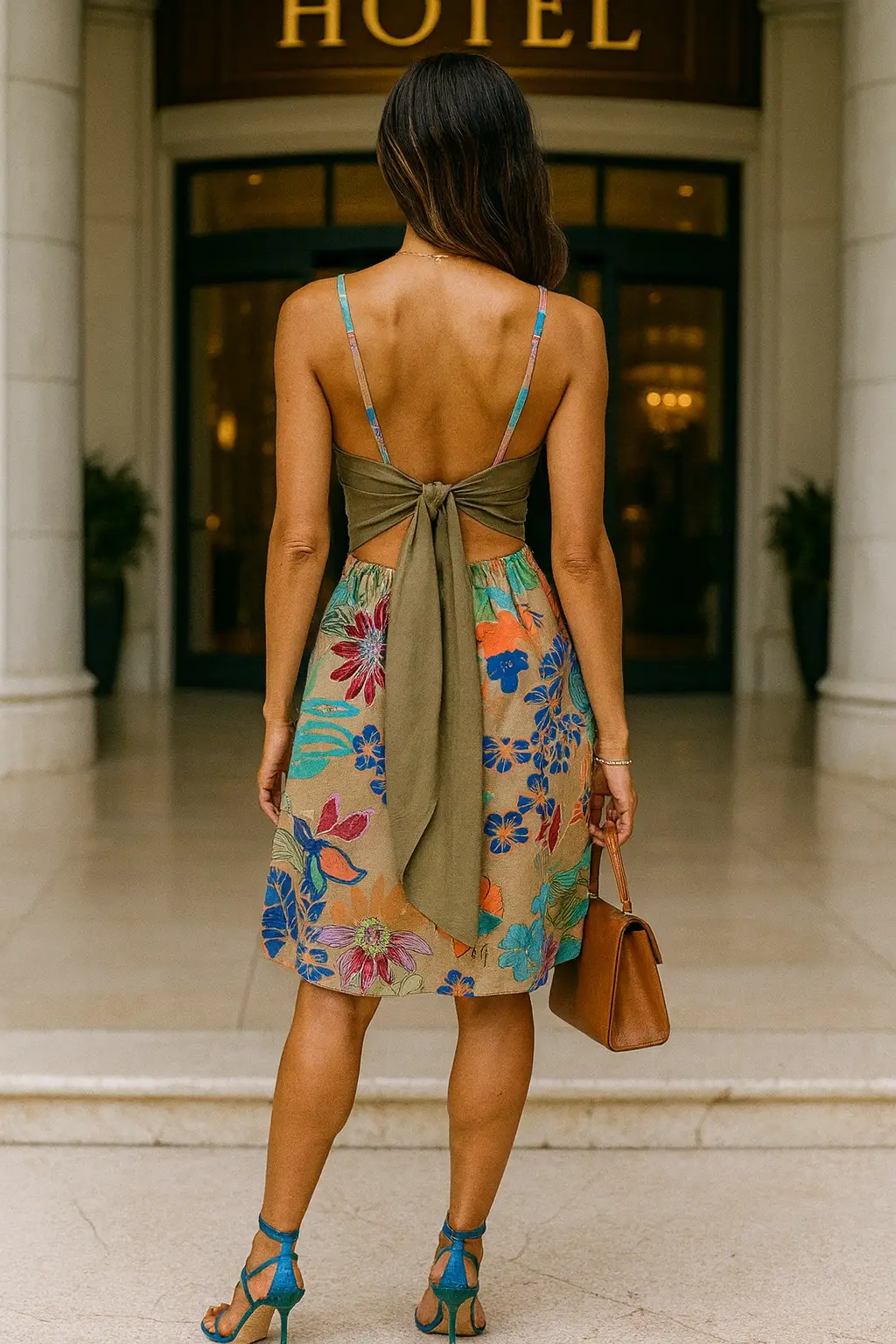 Vanessa Sırt Ve Gül Detaylı Tasarım Elbise
