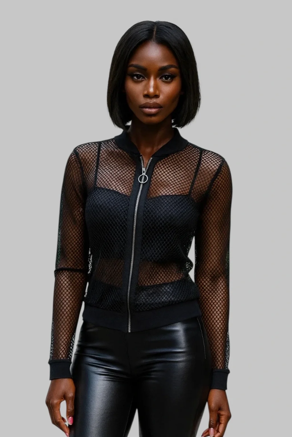 Venassa Vegan Yakma Tül Deri Detay Tasarım Bluz