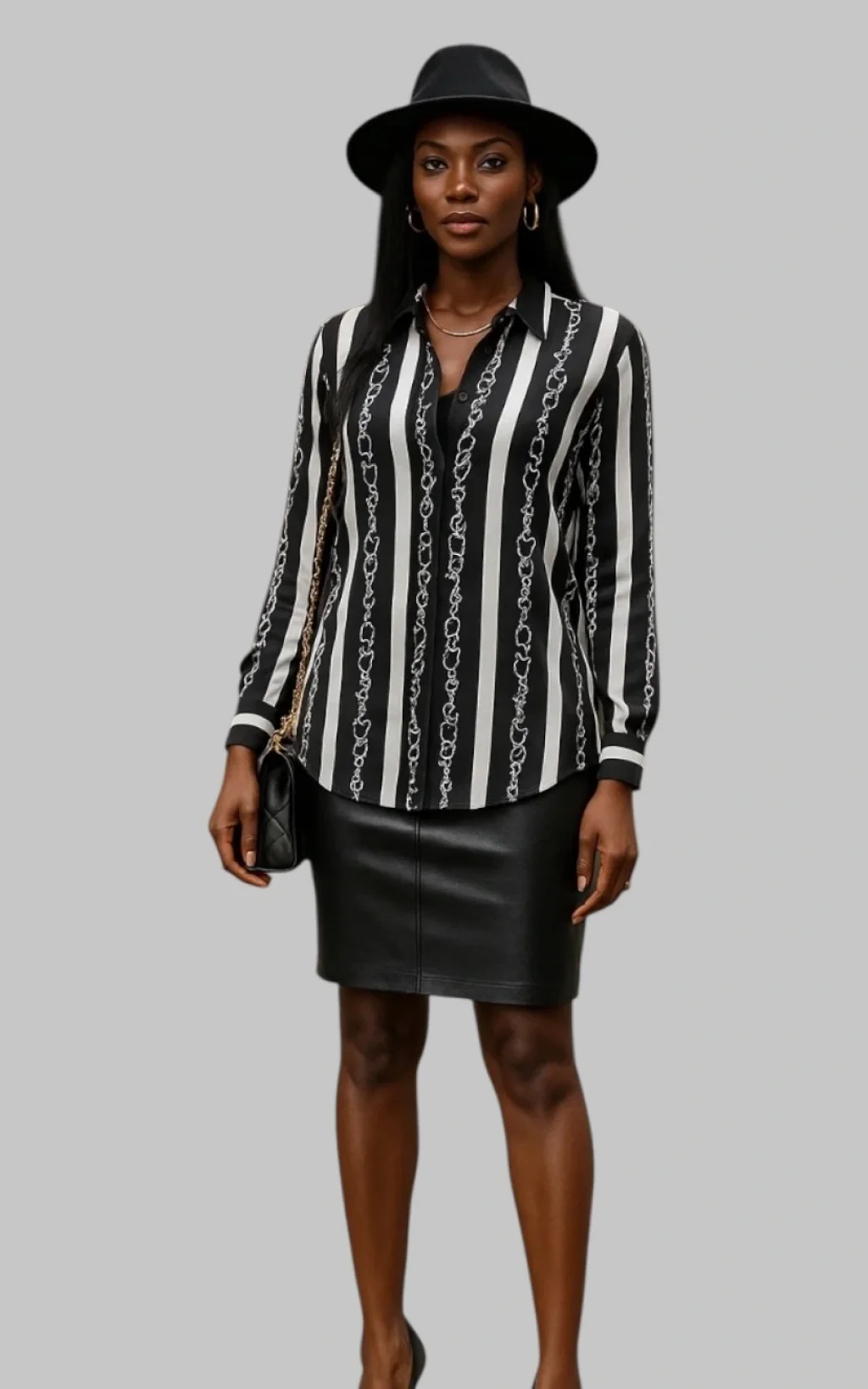 Zeta Jhons İthal Saten Zincir Desen Gömlek